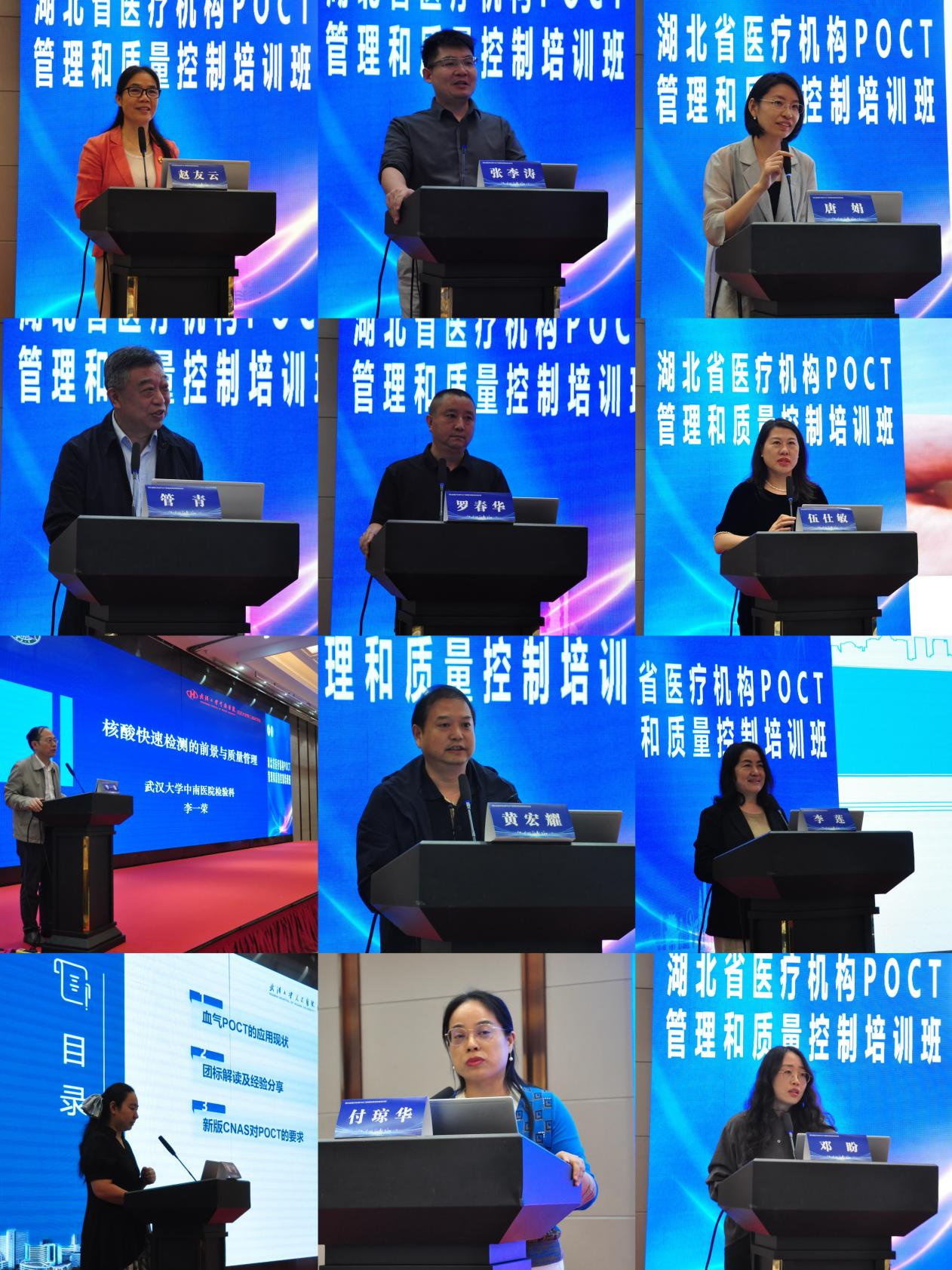 培训班邀请黑龙江省医院魏影副院长、广西自治区人民医院唐娟教授、湖北省中医院赵友云教授、华中科技大学同济医学院附属同济医院管青教授、武汉大学中南医院李一荣教授、武汉亚心总医院张李涛主任、宜昌市中心人民医院罗春华主任、随州市中心医院黄宏耀主任、武汉大学人民医院戴雯教授、长江航运总医院伍仕敏主任、十堰市人民医院李莲主任、湖北省临床检验中心付琼华科长、湖北省临床检验中心邓盼老师等多位专家授课。专家们围绕等级医院评审及ISO 15189对POCT管理的要求、POCT临床应用与风险管理、医院POCT管理实践、院内POCT同质化管理、即时检验相关标准解读、信息化建设与结果报告管理,以及血气分析、血糖检测、心血管标志物与分子诊断等重点领域的质量控制规范,进行了系统教学。同时,结合理论考试,帮助学员加深理解并巩固学习成果。