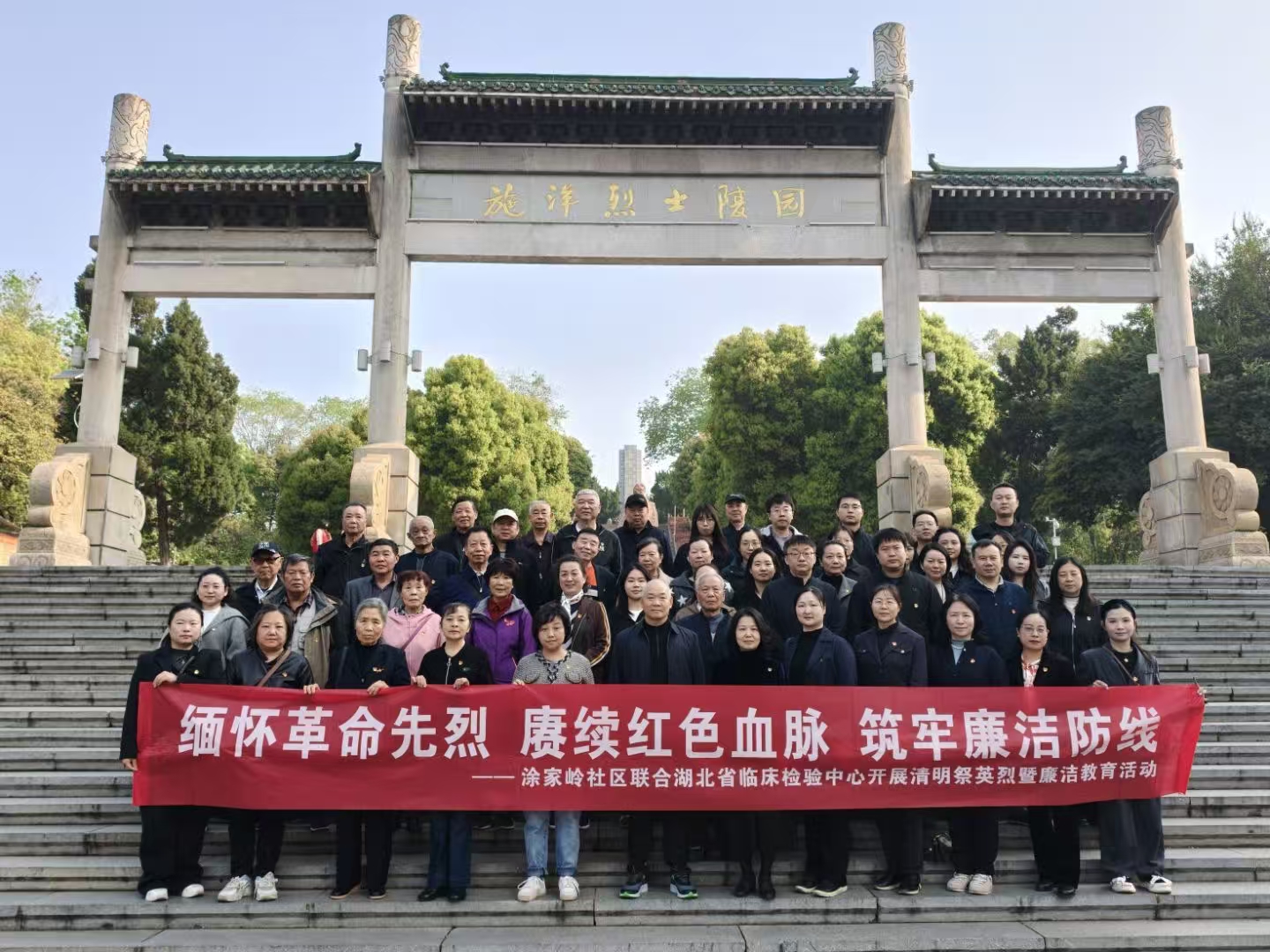 为传承红色基因、缅怀革命先烈、深化结对共建工作,2026年4月1日上午,湖北省临床检验中心联合涂家岭社区前往施洋革命烈士陵园,开展以“缅怀施洋先烈 赓续红色血脉 筑牢廉洁防线”为主题的清明祭扫活动。中心的党员干部及职工,与涂家岭社区的党员、居民和志愿者共同追忆往昔峥嵘岁月,从中汲取奋进力量。